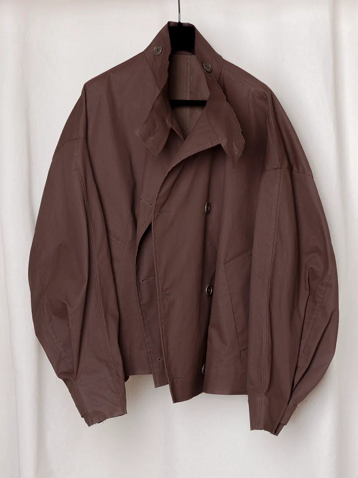 I’ve yet to see their pieces in person, but after their latest post, you can count me in on whatever Amachi releases for FW25. For now, I’ve highlighted a few favourites available at Vision of Fashion — the Mud Brown Fabric Forming Anorak, Nomadism Wrapped Shirt, Double Knee Heavyweight Cargo Pants, and Dark Brown Meeting Jacket.