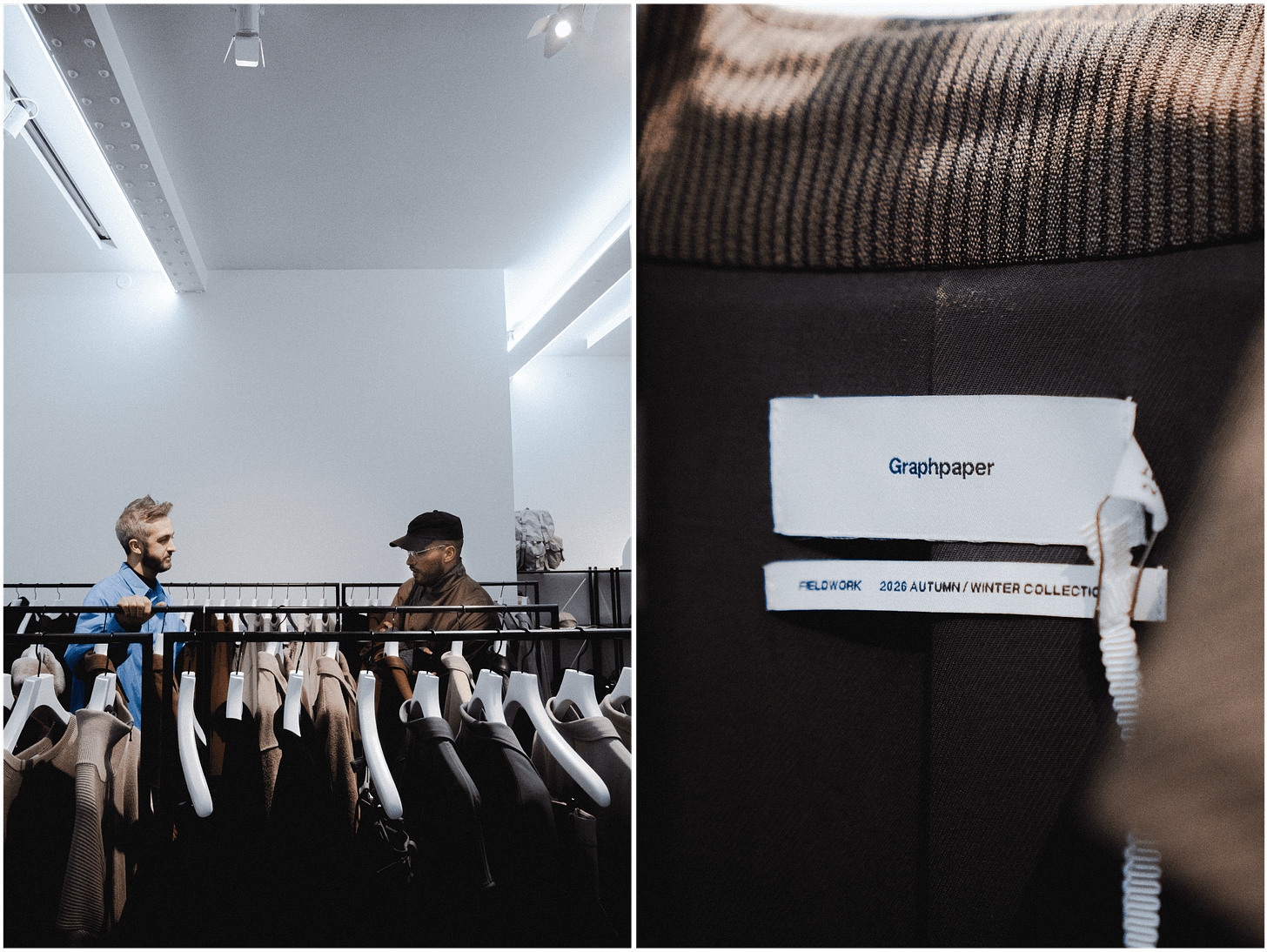 I also had the chance to speak with George Cole, part of Graphpaper’s Design & Planning team. Before sitting down with Minami, he walked me through their FW26 collection, and overall ethos behind the brand.