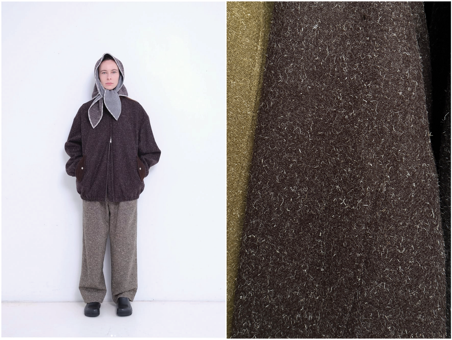 One common thread I noticed this season was the amount of development happening in the Bishu region of Japan. For context, Bishu is one of the most significant wool textile regions in the world, producing a large portion of Japan’s wool fabrics, with a history stretching back centuries. Various brands, both small and large, are working with mills there, using similar to the same fabrics, creating similar to the same silhouettes and patterns.