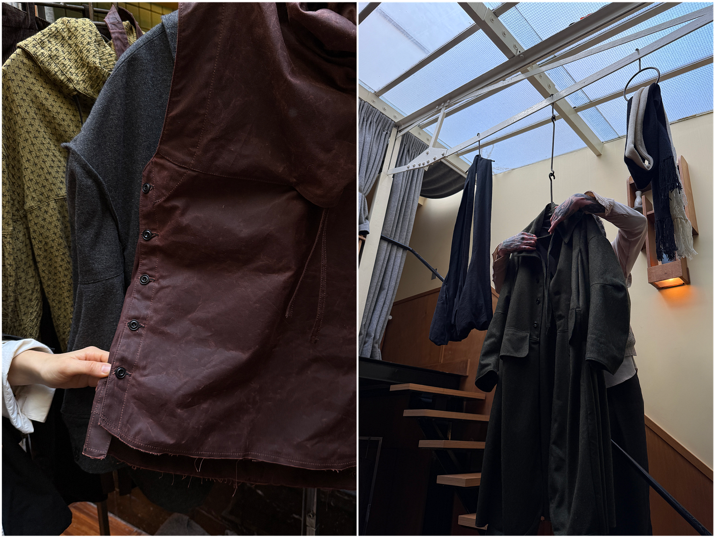 It’s not just a romantic “Made in Japan” detail. When you handle garments developed there, you can absolutely feel the difference. The texture, construction, care, and attention to detail; how the fabric holds it shape, feels on the body. There’s a maturity to it.