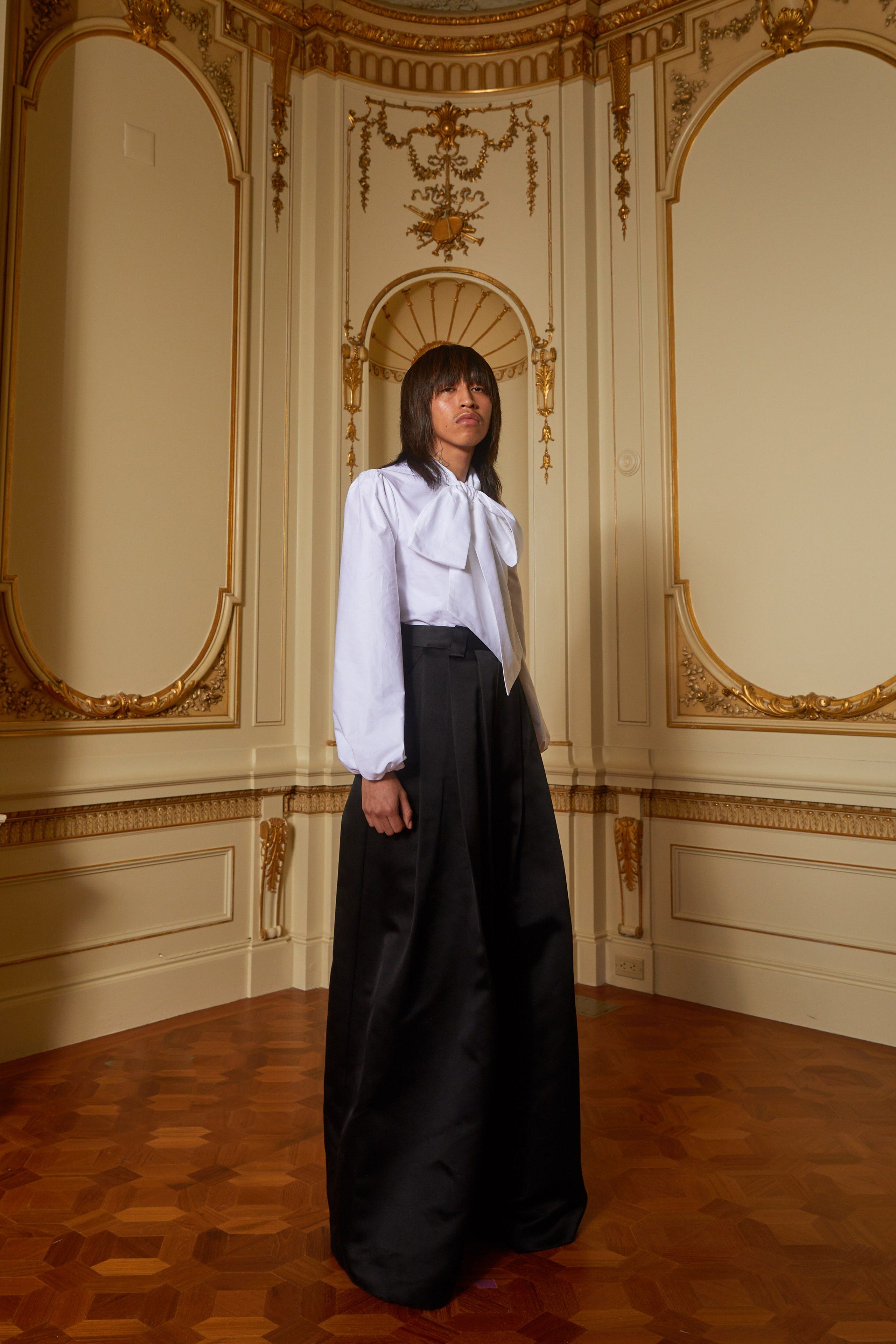 While his heritage plays a pivotal role in his collections, you can also see how the world’s overall tumultuous climate in general plays a part as well, as seen in the more rugged pieces like the destroyed undergarments and tanktops from SS24. “We’re kind of looking at some of the destruction in the world,” he says in ELLE’s interview, “a little bit of the dystopia that we’re all suffering from right now,” as he shows a destroyed blazer that looks like it’s been sitting in the sun with its fading all-over, yet constructed with a fine tailoring Chavarria-twist to it.
