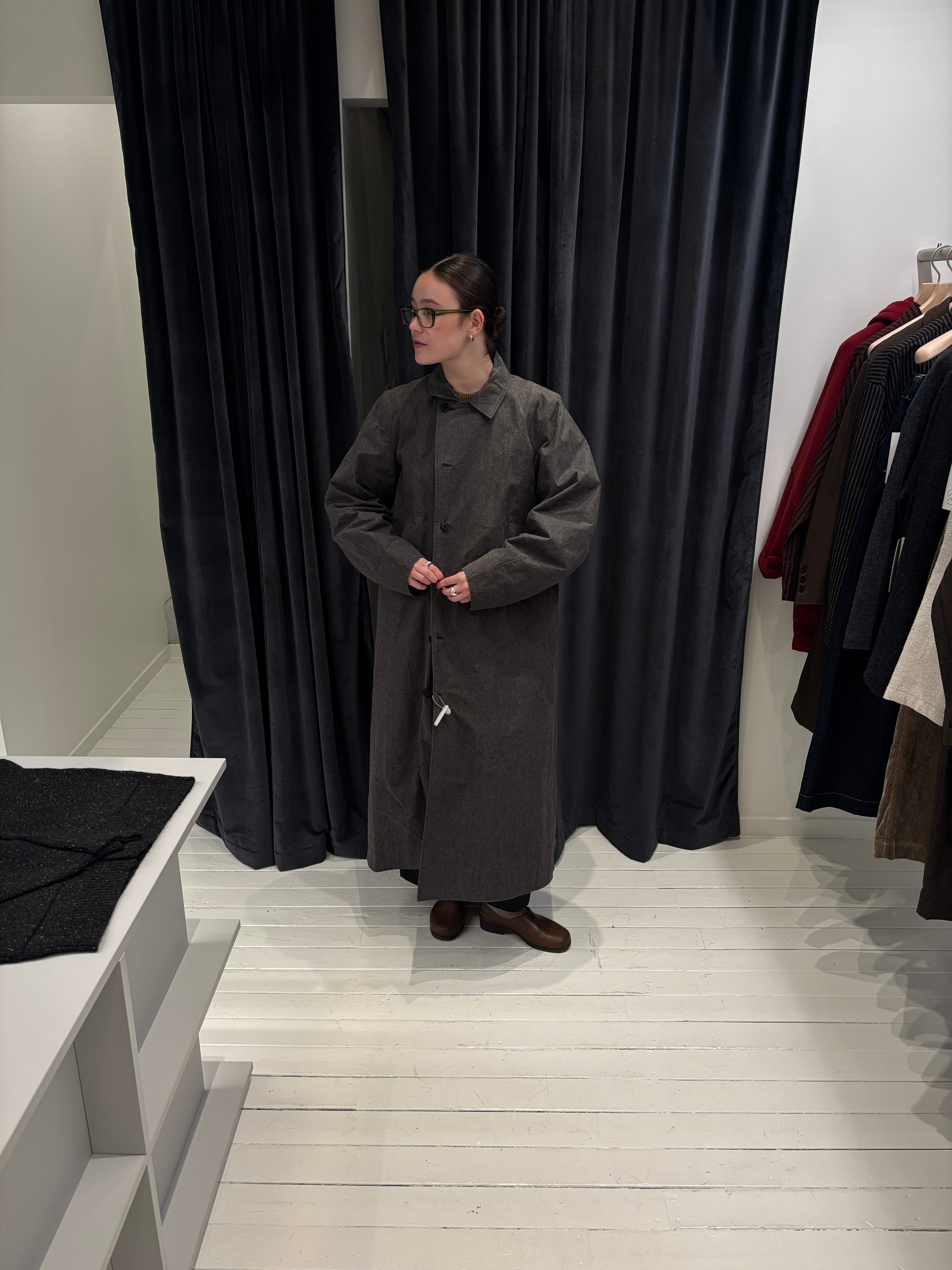 It’s a canvas coat, so the way it folds and crinkles as you’re moving gives it plenty of character. Something that will evolve over time with its shape and structure, so in a way, you are documenting your experiences, memories and moments every time you throw it on. It will age, it will fade, it will wrinkle, but there’s a beauty to it that we should learn to appreciate more. Time to watch The Substance.
