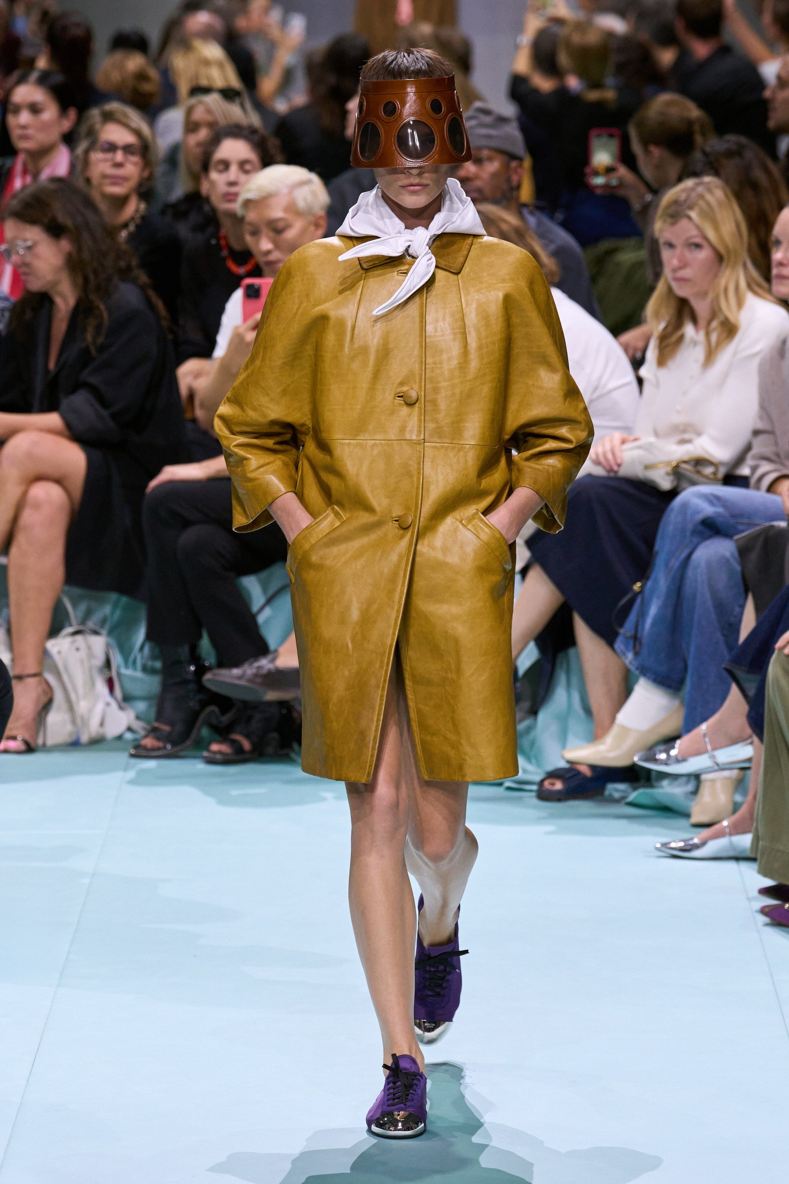 With Prada SS25, it reminded me of a time when people were drawn to technology in a less dystopian way, and more of a “here’s a vibrator” kind of way. For example, the fit below looks like what you would wear to go see a countertop microwave for the first time:
